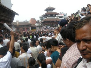 "Сегодня шестой день всеобщей забастовки, люди становятся не в состоянии переносить бремя, связанное с непрерывными забастовками. С целью, оказать давление на безответственных лидеров и подтолкнуть их к мирному урегулированию, FNCCI, Торговая палата и Союз профессиональных организаций (PAPAD) организовали мирное собраний в Катманду на площади Басантапур (Basantapur). Тысячи людей собираются на собрание, требуя мирных решений и немедленного выхода из политического тупика."