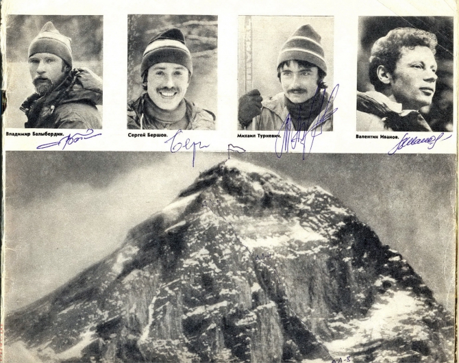 Если сложиться, готов презентовать журнал "Огонек" №20, май 1982 г. со статьей "Покорение властелина" с фотографиями восходителей и личными их автографами, включая и Мишу Туркевича. И с подписью Тамма.
