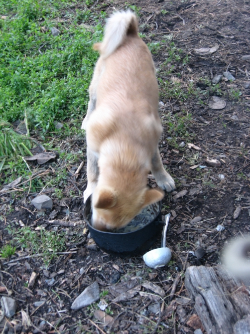 Надо отметить, что к палатке, оставленной на леднике, подходили в полной темноте - как только Бим нашёл её, сразу просигнализировал об этом громким гавком. Больше нигде не лаял, очень воспитанный пёс!