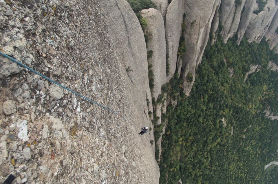 Речь идет об одном из самых сложных мультипитчей массива Монтсеррат, который впервые прошли свободным лазанием Сачи Амма и Ферран Герреро, предложив категорию 8b+. Однако Эду Марин, который лез в связке с отцом, понизил категорию до 8а+.