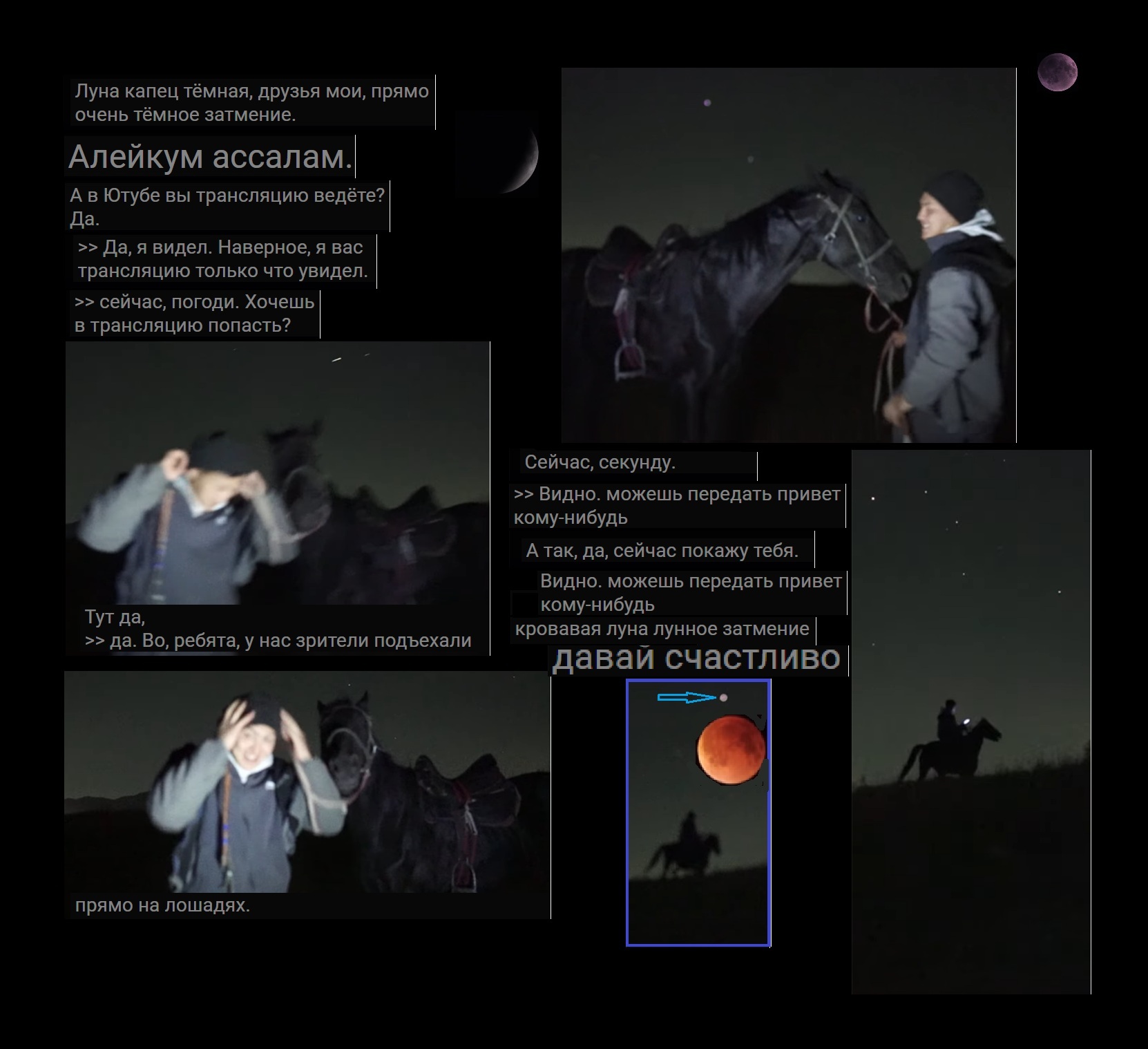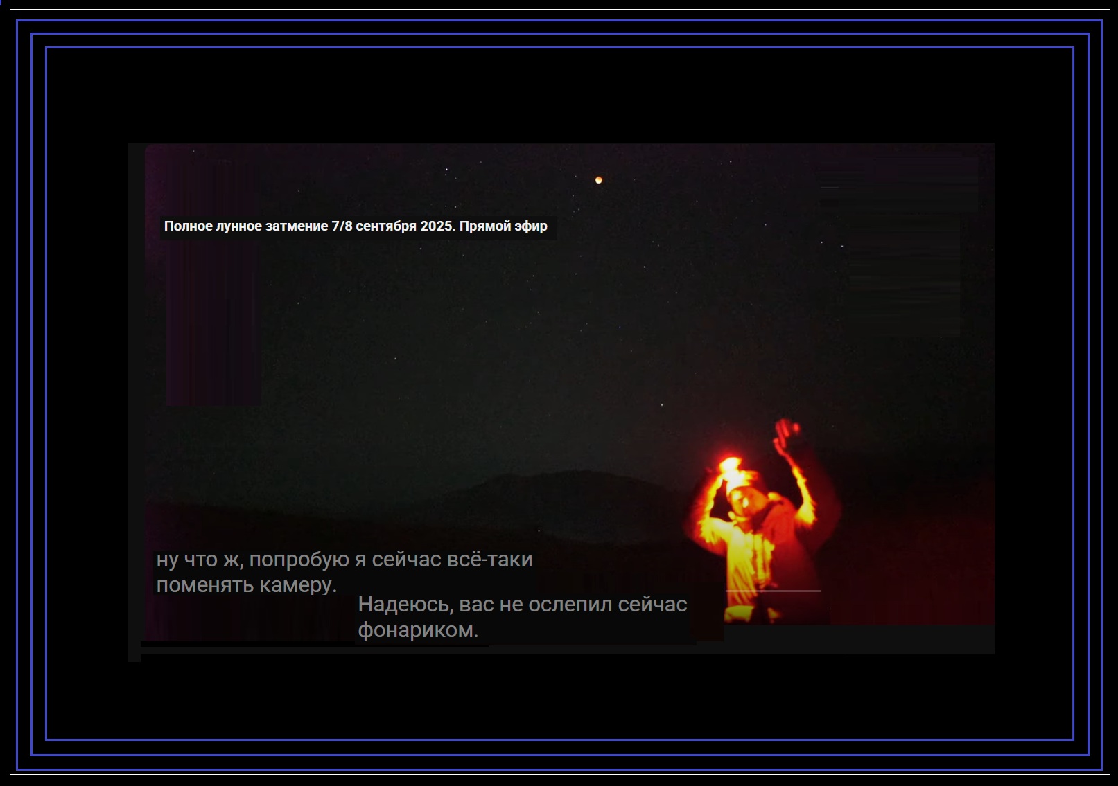 Полное лунное затмение 7-8 сентября 2025. ►Видео-стрим. @astro_channel. Скриншот-коллаж 2400х1215px. Светлячки-бодрячки. Человек и Звёздочки.