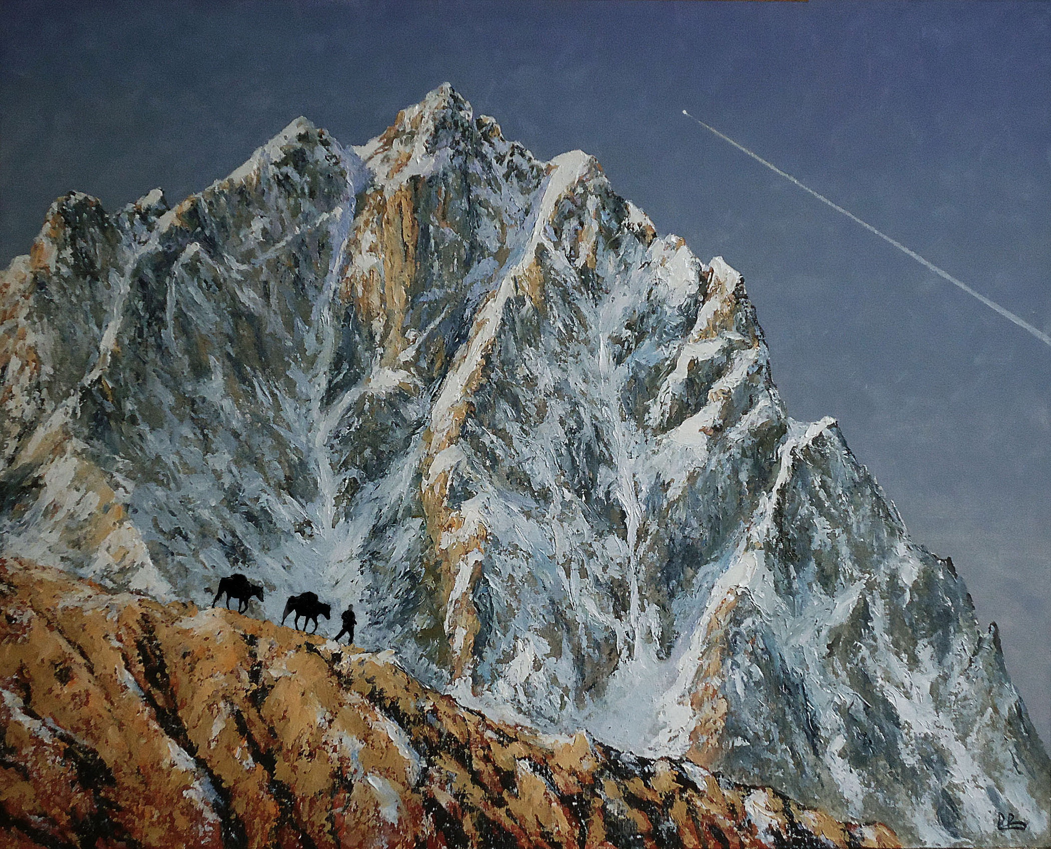 ЧЕРЕЗ ТЕРНИИ К ЗВЁЗДАМ. ЕГО ВЕЛИЧИЕ ЧАТЫН-ТАУ!. Станковая живопись, полотно на картоне 60х50см, масло, Виктор Воропаев.