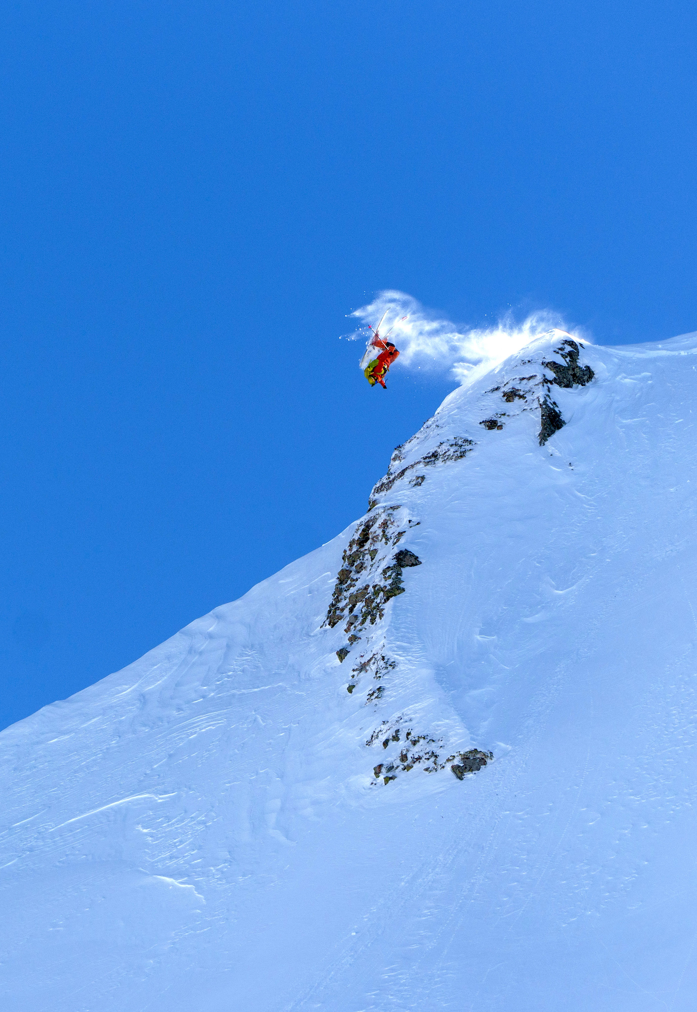 Самым рискованным сегментом стали прыжки ski BASE, когда горнолыжник разгоняется по снегу и прыгает со скалы высотой 500 метров, открывает парашют, и плавно приземляется на ровное место под горой. К слову, это первые прыжки в истории российского спорта.
