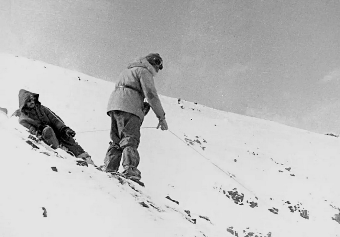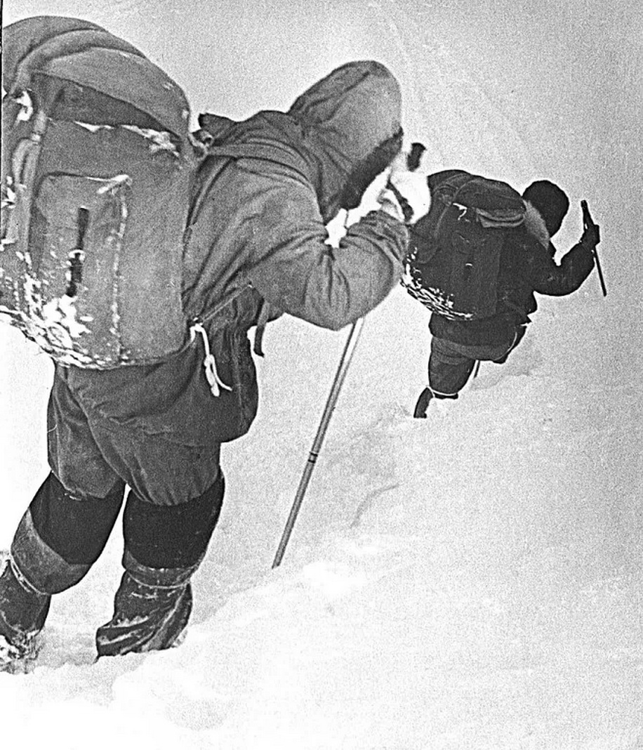 Склоны дышали снегом, а надув справа, нависая, потрескивал... Вслед за безмозглым двинулись Гена Титаков (КМС из Краматорска), за ним - мастер спорта киевлянка Инна Розум... Остальным было тоже страшновато, но морально легче... Эти ведь эти прошли... Да к тому же ещё фотографируются!