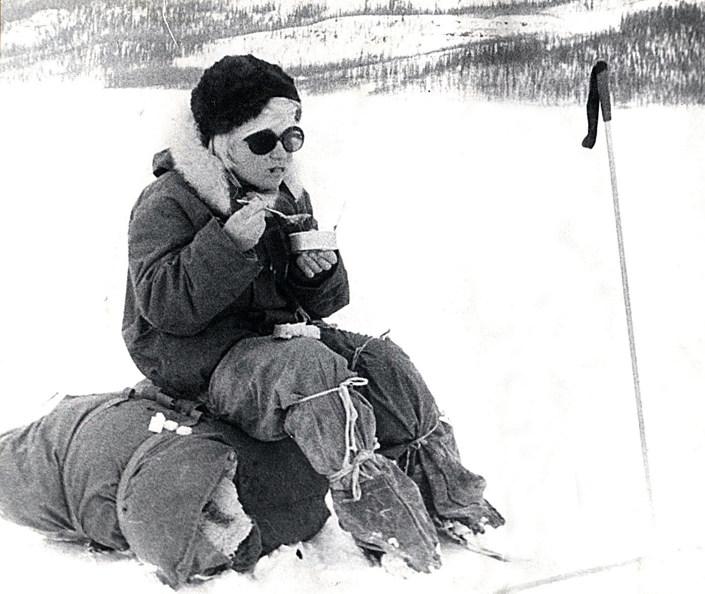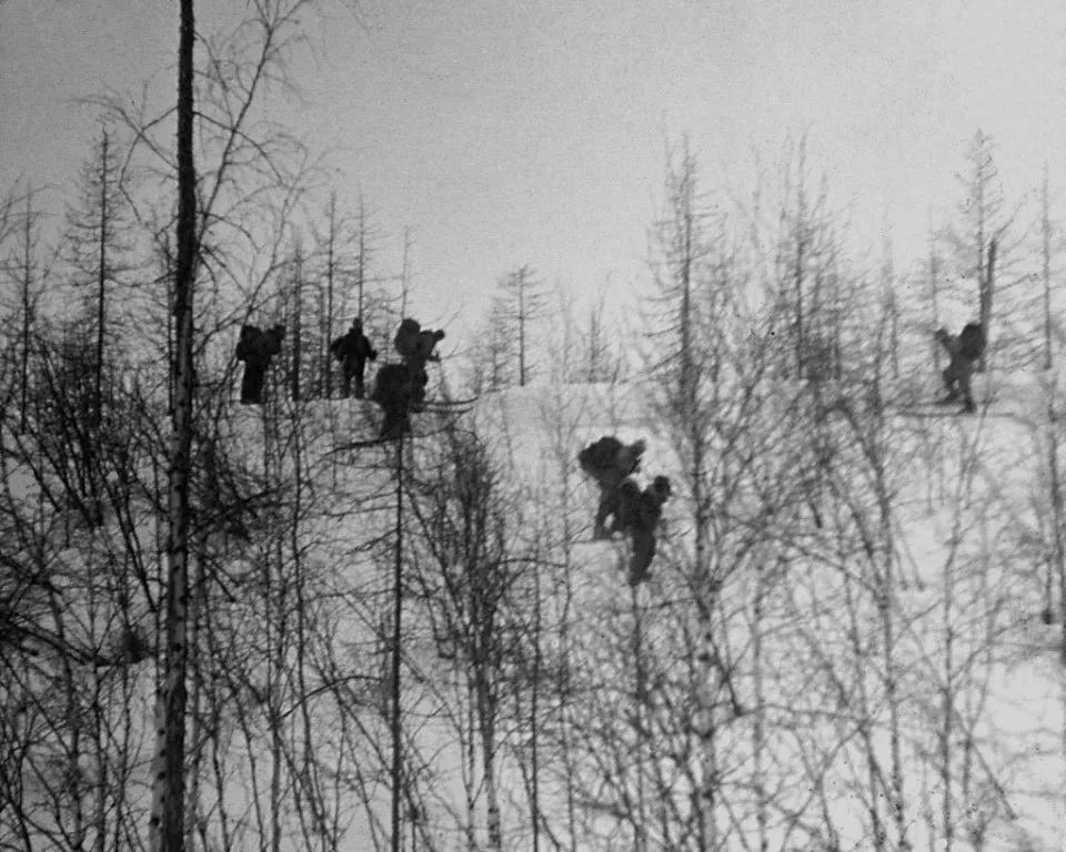 В завершение этого повествования, для разрядки напряженного момента от общения с замполитом и секретной воинской части, несколько сохранившихся кадров, не вошедших в отчет о совершенной походе. Вот идет наша Валюша Ермакова и поёт красивым голоском: "Ах, куда ты, шельма, лыжи навострила? Для кого надела синий свой берет?.."