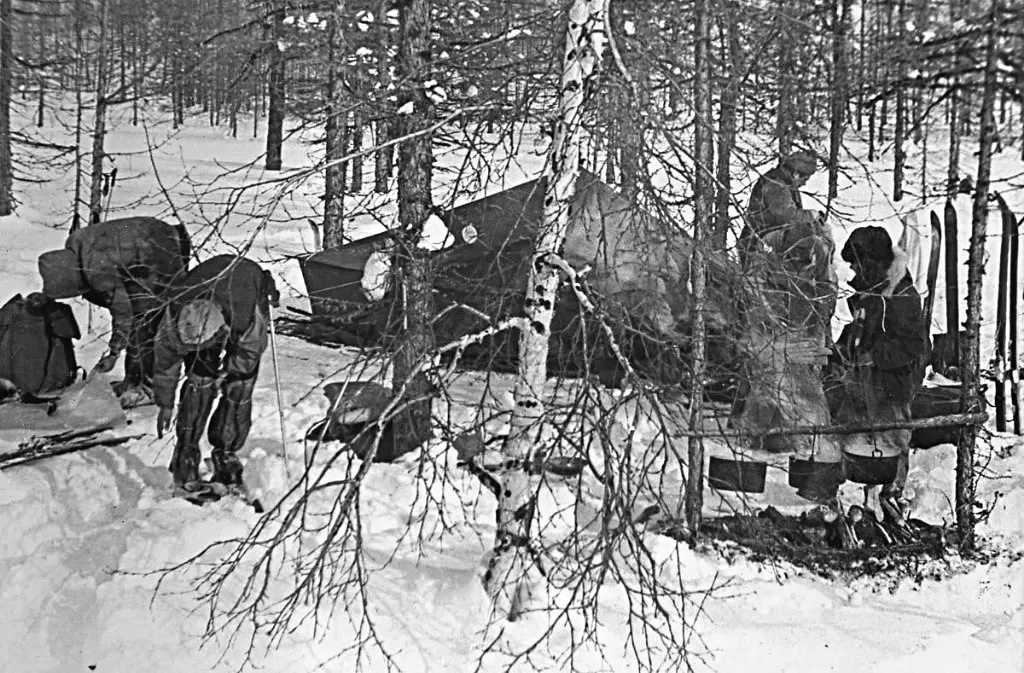 Спали в десятиместной шатровой палатке без дна. Под низ укладывал лапник, сверху поролоновые коврики обтянутые полиэтиленом. Обогревались печью из тонкой нержавейки. Дрова заготавливали по месту или несли с собой впрок.