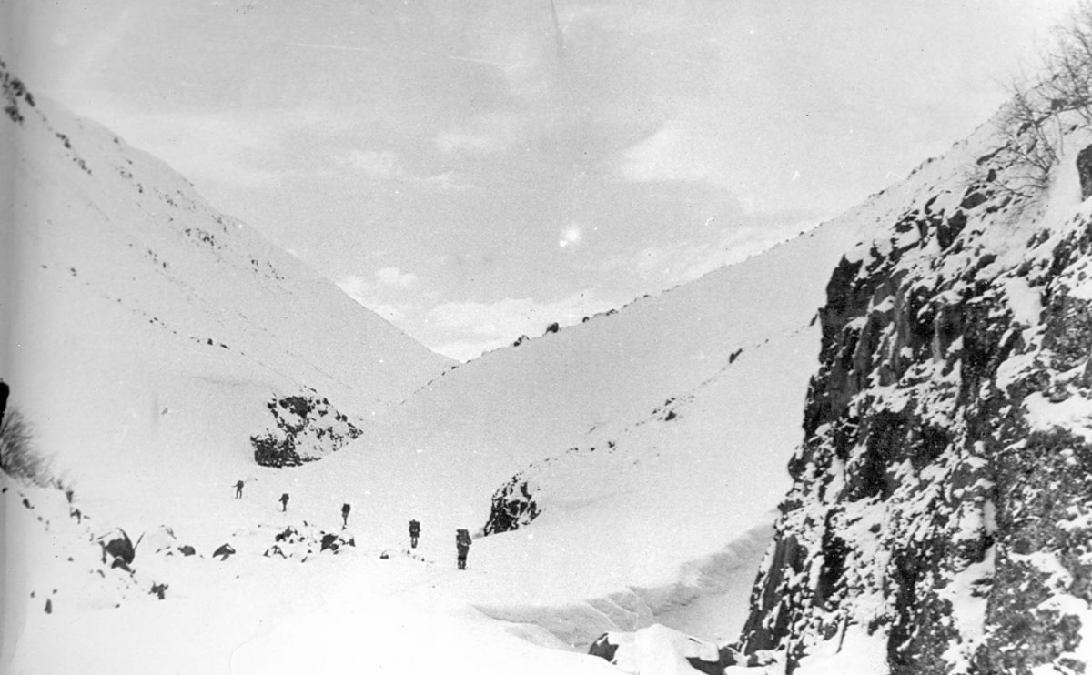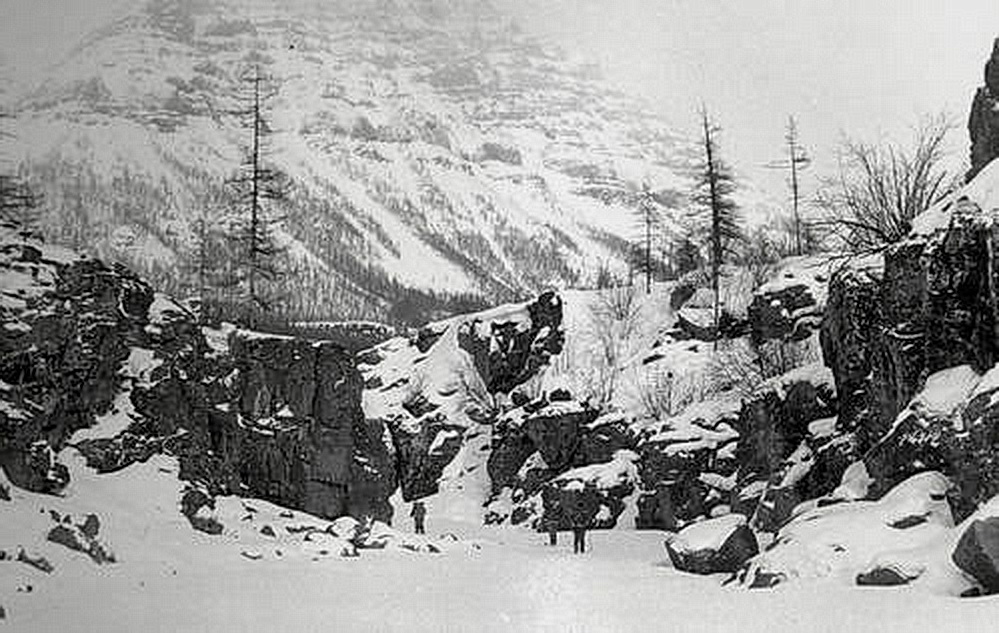 Спуск по каньону к озеру Собачьему на лыжах оказался песней особой! Каньон был узок, извилист и крут. Лыжи набирали скорость мгновенно. И с разгона впечатывали лыжников в поперечные надувы, которые нередко были выше человеческого роста! Белый снег без прямого солнечного света однообразен. Вот где было точно не до съемок... Когда выкатили на желанный простор, повалились с ног и, понемногу приходя в себя, ощупывали ушибы, делились впечатлениями: "Ну, не .уя себе покатались! Однако, слава Богу! серьезных травм избежали..." Потом оказалось, что мы спускались не совсем там, где следовало.