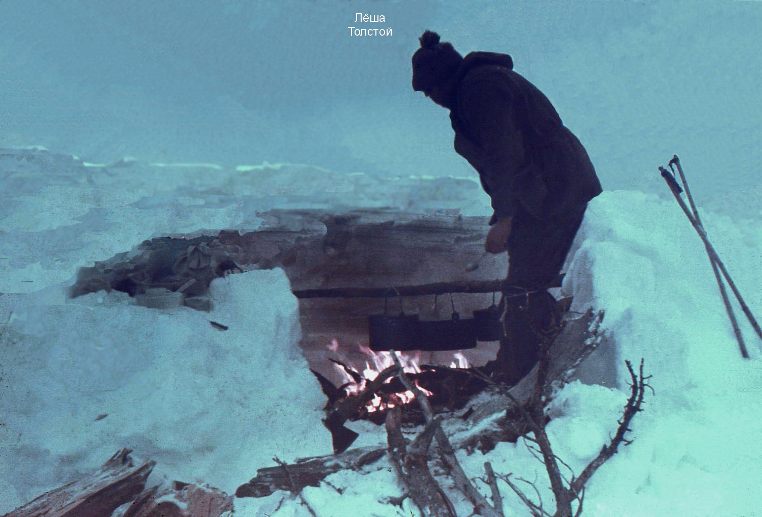 а возможно - наш третий КМС из Краматорска Толик Недоля, натирающий воском лыжи, которые оставили на себе отметины жесткого наста, промороженного льда и не прикрытых снегом камней. То есть - всех 468 километров нашего маршрута.