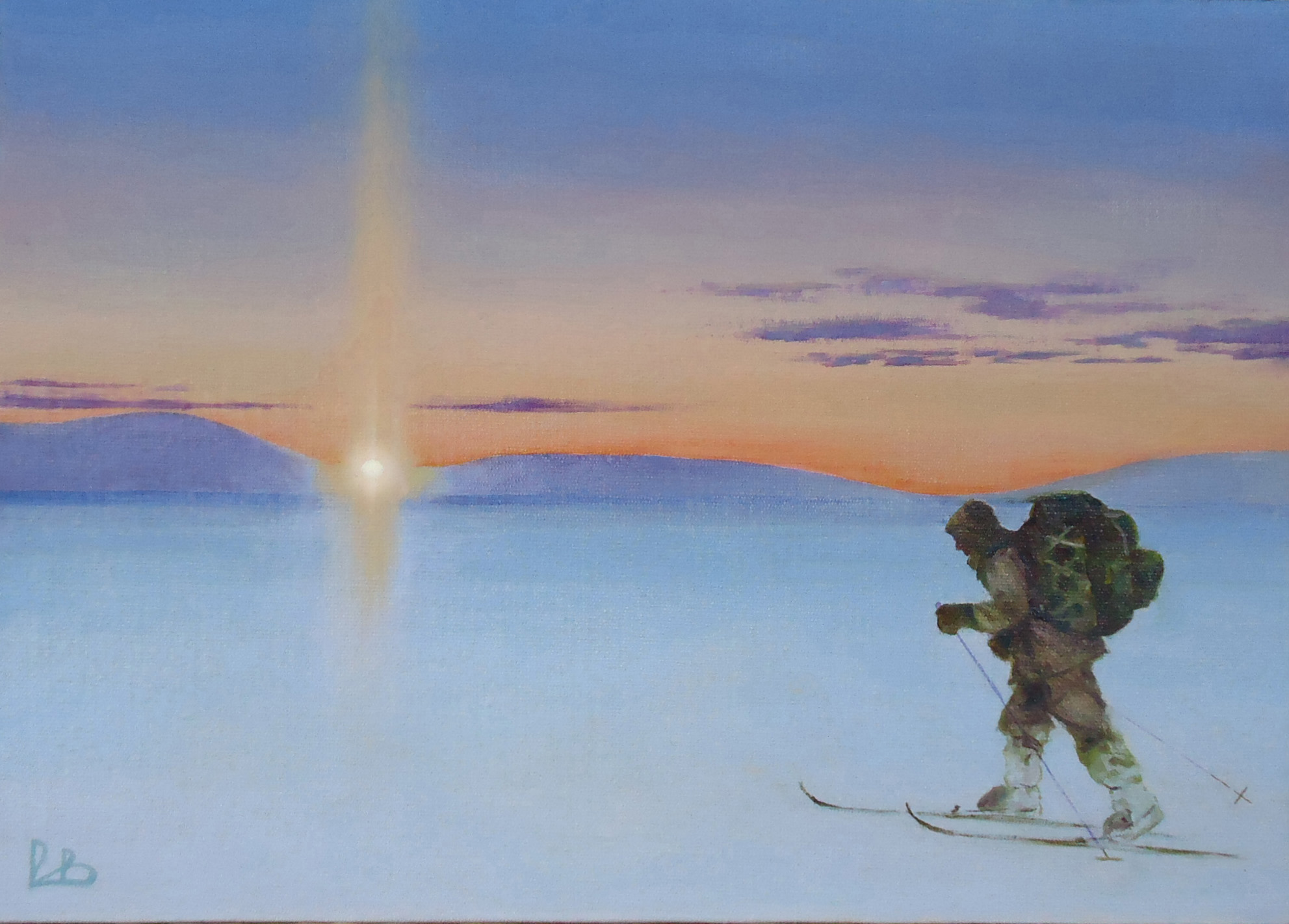 ТАЙМЫРСКИЙ МАРАФОН. Станковая живопись, полотно на картоне 40х30см, масло, Виктор Воропаев. Исходным материалом послужило фото, что опубликовано ниже...