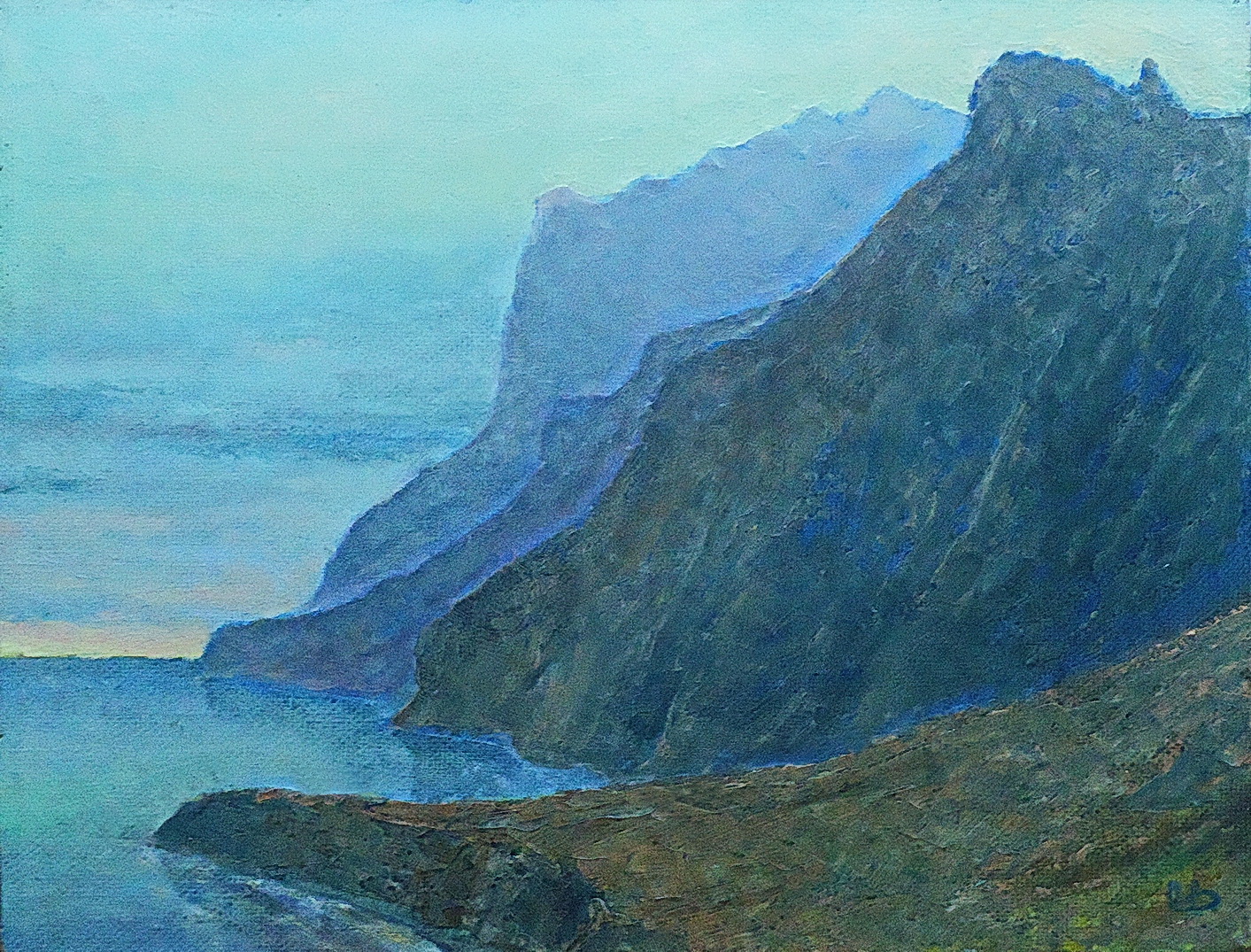 ВУЛКАН КАРА-ДАГ В ОЖИДАНИИ КЫМСКОЙ НОЧИ. Сделано на пленэре в сентябре 1978г. ДВП 40х31см, масло, Виктор Воропаев. Доработано в художественной мастерской города Краматорска в ноябре 2025 года.