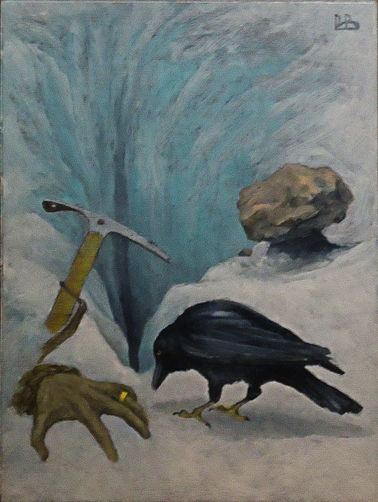 НА КАВКАЗЕ ТАЮТ ЛЕДНИКИ. Станковая живопись, грунтованный картон 31х50см, масло, Виктор Воропаев.